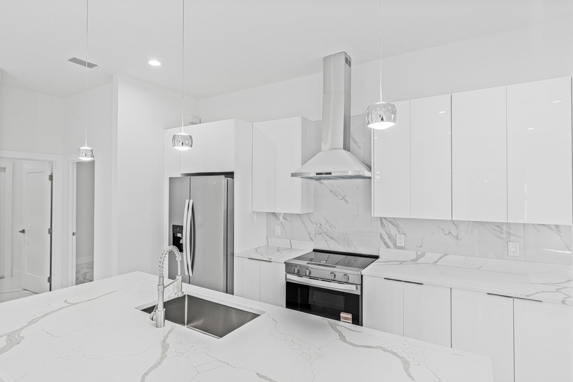 Step into a sleek, state-of-the-art kitchen featuring top-of-the-line appliances, stylish finishes, and plenty of space for culinary creations. The open floor plan is perfect for entertaining, with contemporary touches throughout that elevate the living experience.